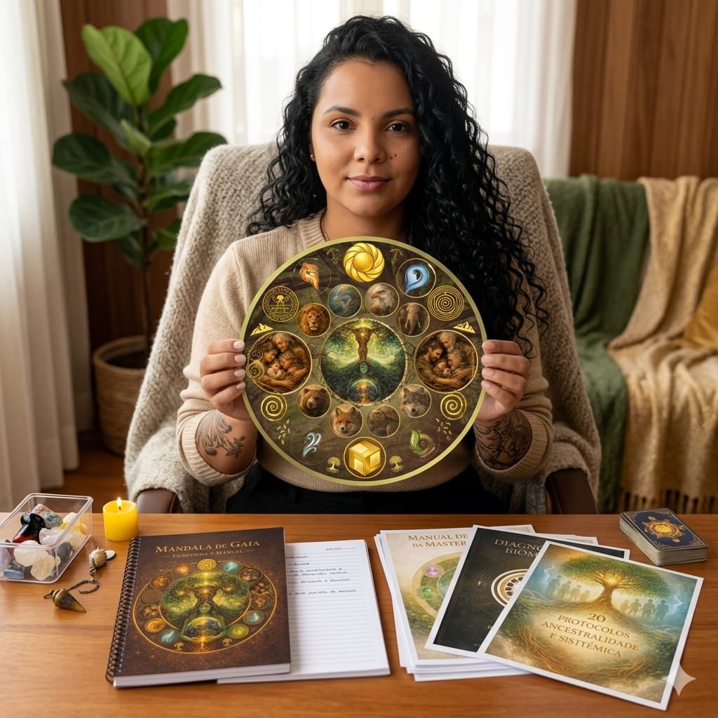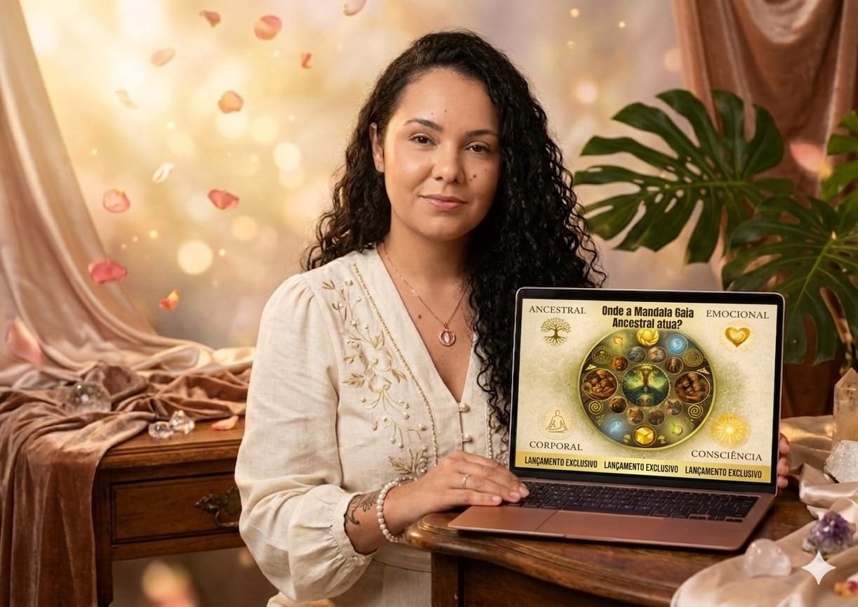 Trabalho na intersecção entre ciência da mente, espiritualidade aplicada e energia vibracional. Criadora da Mandala de Gaia Ancestral — instrumento desenvolvido para acessar o campo sistêmico e ancestral de cada pessoa.