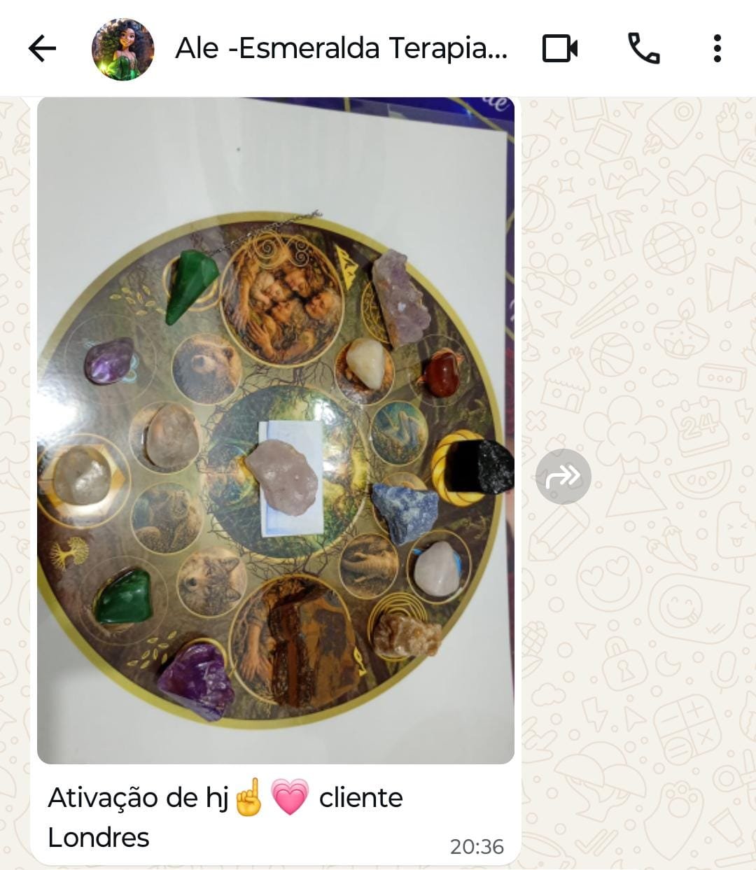 Ativação de hj — cliente Londres. A mandala funciona presencialmente e à distância com a mesma precisão.