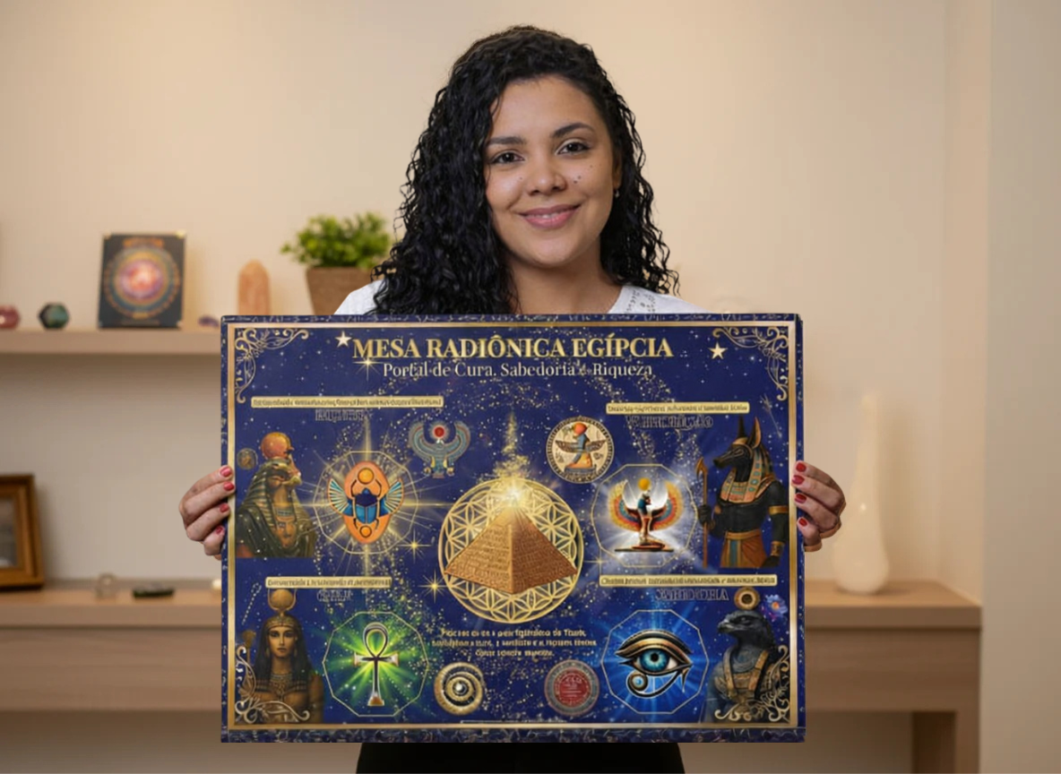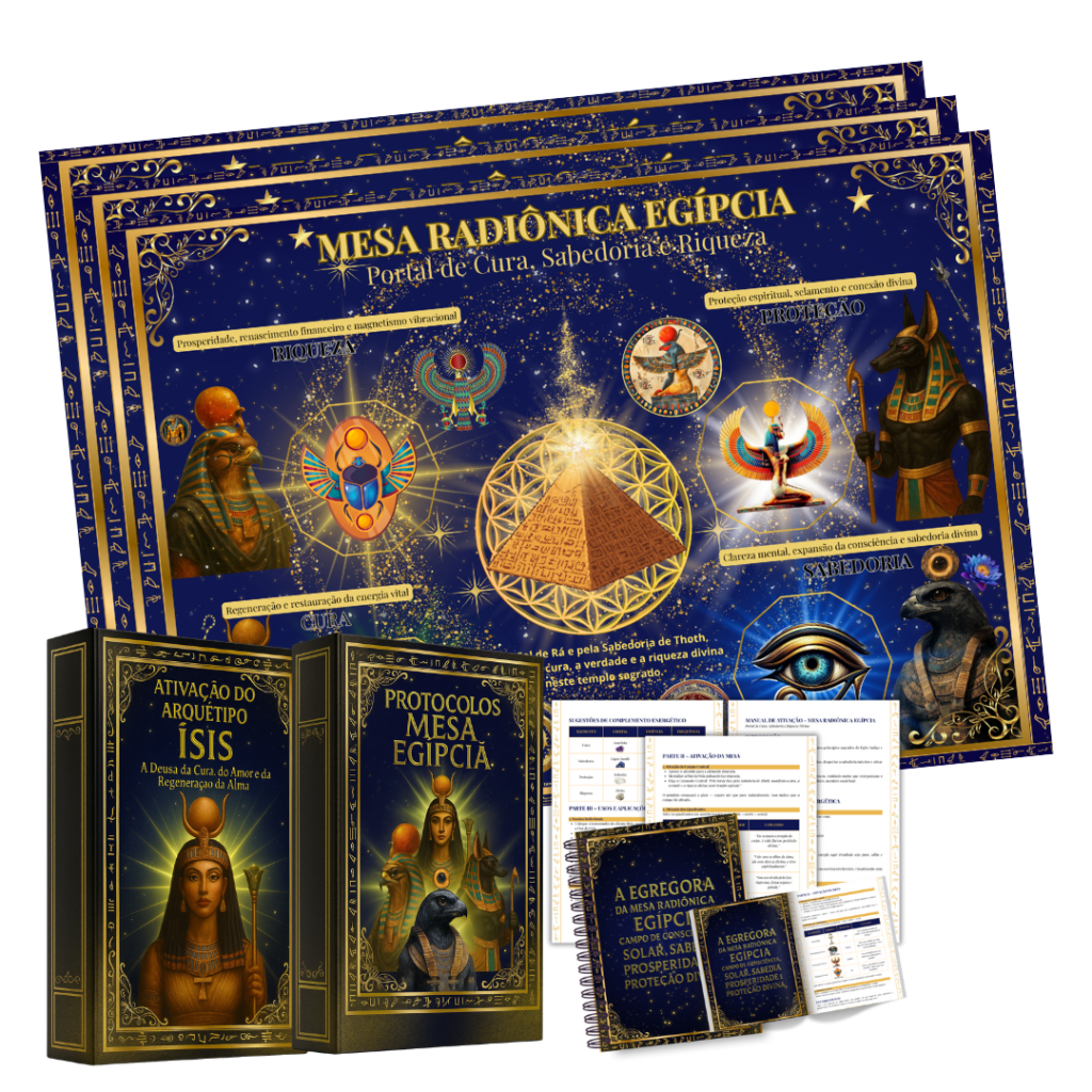 A Mesa Radiónica Egípcia foi criada para acessar o campo solar de cura, prosperidade e sabedoria dos antigos templos, limpando bloqueios energéticos, restaurando o fluxo vital e ativando a força de manifestação no campo dos seus clientes.